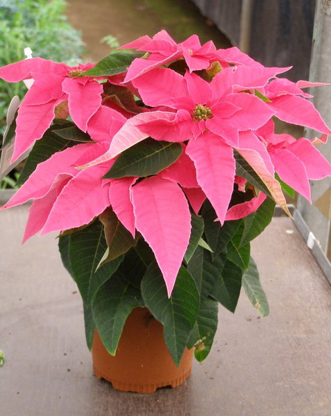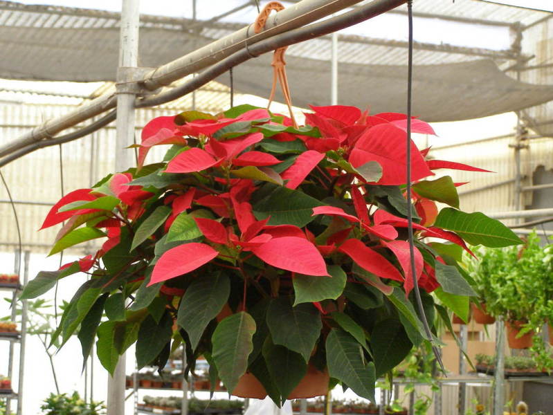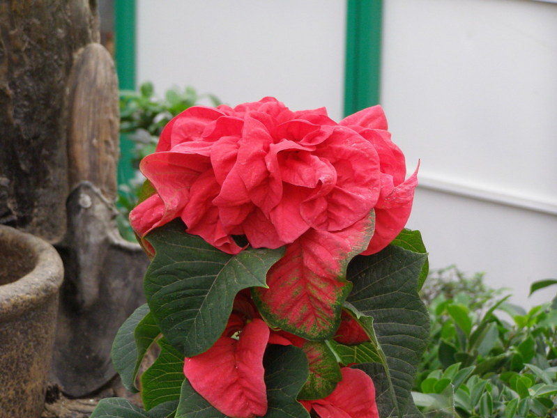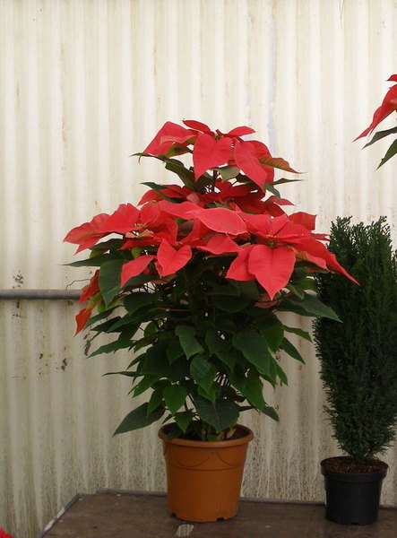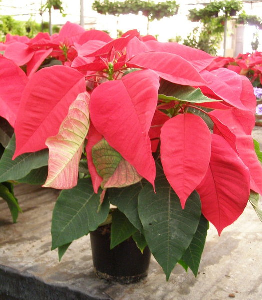 Pascua Winterrose o Rosa de Invierno en maceta de 15 cm y aprox. 70 cm de altura. Variedad de hoja rizada.