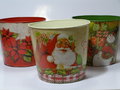 Cubremaceta de latón con motivos navideños de 18x15.5 cm. Tres decoraciones para elegir. Ideal para Flor de Pascua en maceta de 14 a 16 cm.
