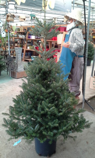 Abeto Koreano en maceta de 40 cm y 150 cm de altura. Cultivado en maceta. Ideal para árbol de Navidad. Al tener toda su raiz no pierde la hoja como los cortados.