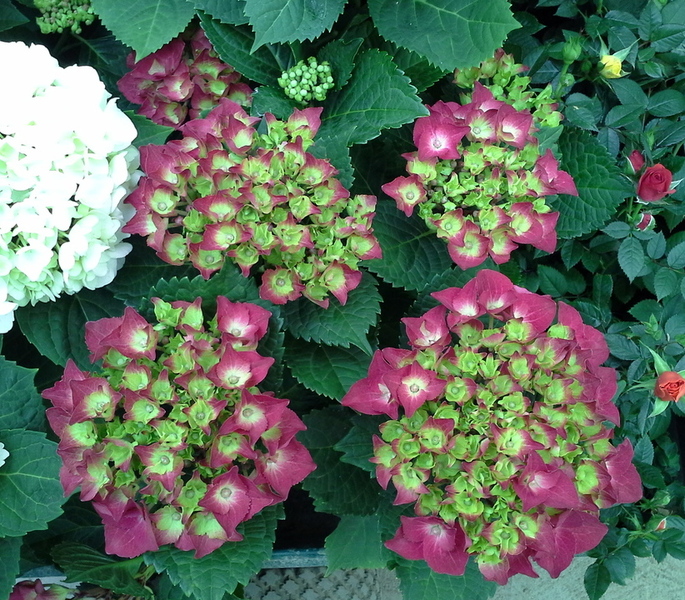 Hortensia o Flor de mundo en maceta de 17 cm. Disponible en tres colores, azul, blanco y rojo. Se recomienda usar tierra ácida (ph bajo) si que quiere trasplantar.