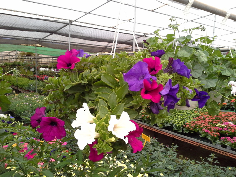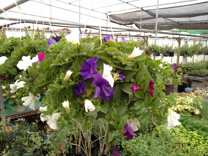 Surfinia en maceta para colgar de 20 cm de diámetro. Esquejes de varios colores en cada maceta. Ideal para ubicaciones a pleno sol.