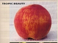 Melocontón Tropic Beauty en maceta de 17 cm de diámetro. Arbol muy vigoroso. Fruta grande, redonda y de color rojo en un 80% con la pulpa amarilla. Ideal para zonas de bajo reposo.